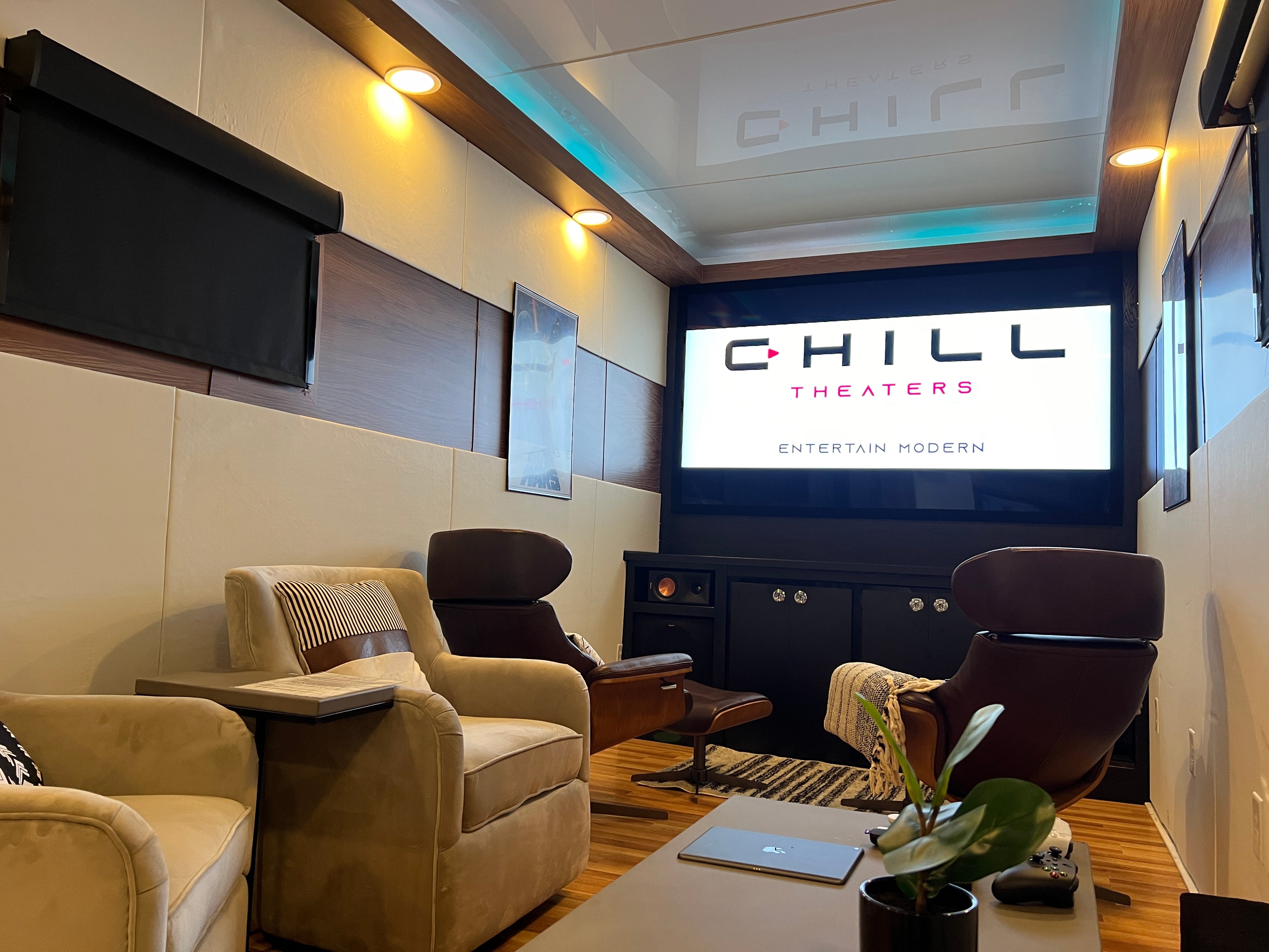With plush seating for up to 12 adults, a private restroom, and a fully equipped kitchen on board, Chill Theaters is more than just entertainment – it’s an experience.